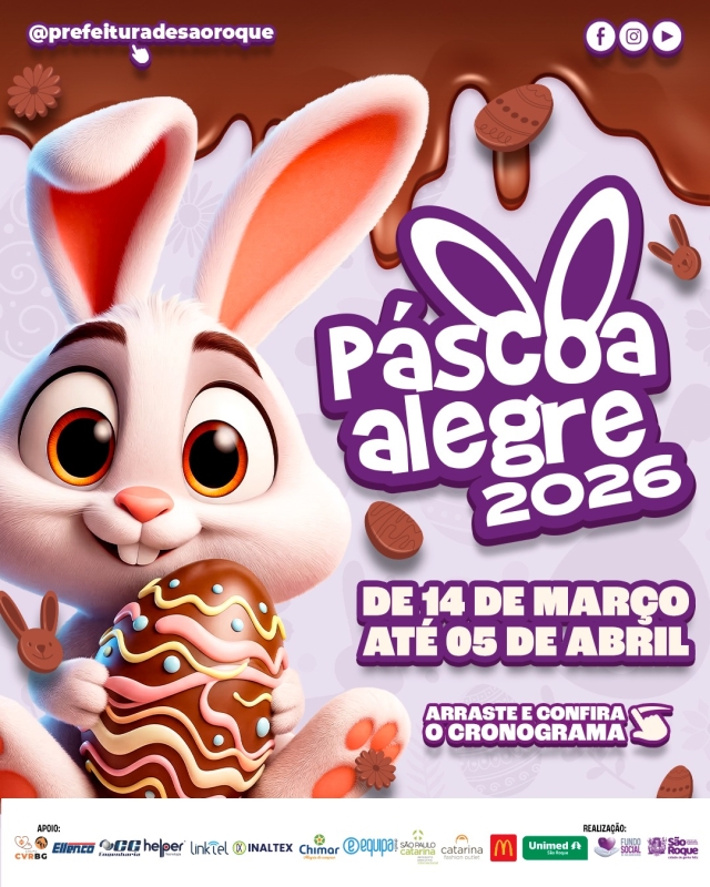 A iniciativa reforça a proposta da Prefeitura de promover eventos que valorizem a convivência familiar, incentivem o lazer e fortaleçam o espírito de celebração na cidade, transformando a Páscoa em um momento de encontro, alegria e tradição para toda a região.