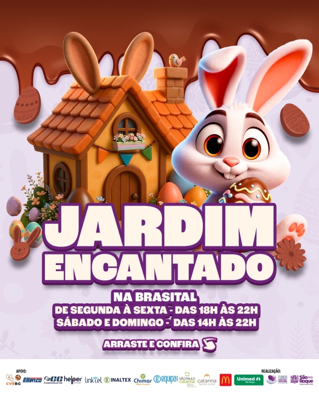 Assim como a Brasital, que foi toda decorada com elementos temáticos da Páscoa, o Jardim Encantado é um espaço pensado para proporcionar um passeio especial às famílias, que poderão visitar o local de segunda à quinta, das 18h às 22h, e de sexta a domingo, das 14h às 22h. A partir da sua abertura o espaço contará com a presença de coelhinhos entre quarta e domingo, sempre das 19h às 22h.